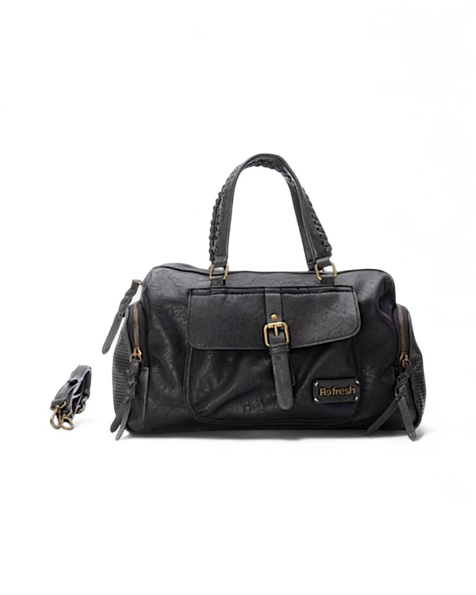 Bolsa feminina Refresh, em material vegan de acabamento suave. O design funcional inclui bolsos internos forrados e um bolso externo frontal, perfeito para guardar o telemóvel ou as chaves sempre à mão. Fecha com zíper e pode ser usada ao ombro ou em estilo tiracolo, garantindo versatilidade no dia a dia.