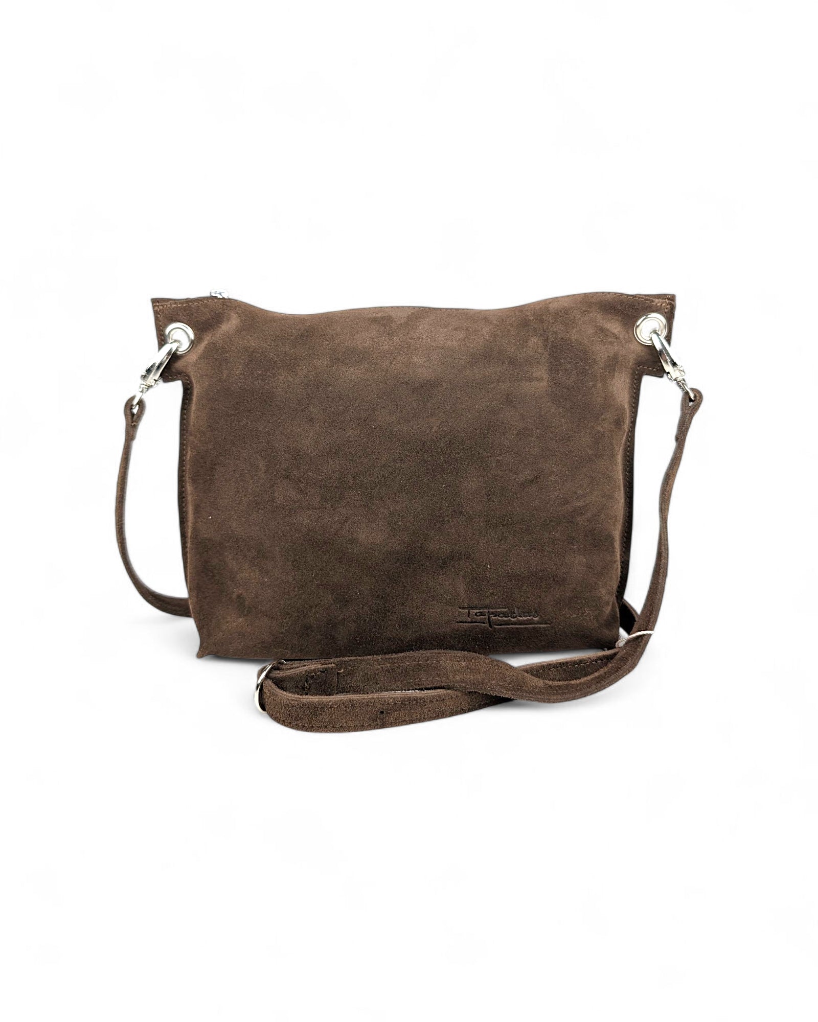 Mala tiracolo, a fechar com zip. Forro textil. Argolas metálicas e Alça ajustavel com fivela.